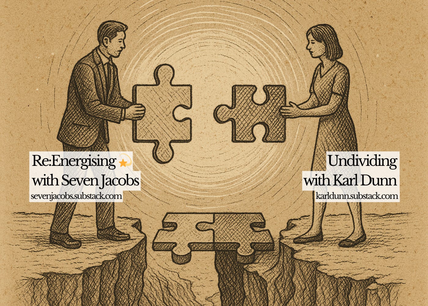 To tackle this today, I (Seven Jacobs, writer of Re:Energising) wanted to team up with Karl Dunn, author and writer of the Undividing Substack, because he’s an expert and all around inspiration connecting the dots on all things to do with coming back together in a divided world.